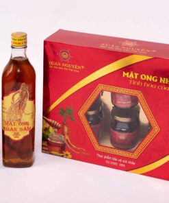 Mật ong nhân sâm của Xuân Nguyên có thành phần gồm mật ong (75%) và nhân sâm (25%), không chứa chất bảo quản an toàn đối với mọi người. Mật ong được lấy từ những tổ ong chất lượng tốt nhất. Qua quy trình xử lí thủ công, mật ong có màu vàng cánh gián, đặc sánh giữ đúng hương vị nguyên chất của mật ong. Với kinh nghiệm gần 20 năm trong lĩnh vực sản xuất mật ong, Xuân Nguyên tin chắc sẽ mang đến cho bạn sản phẩm mật ong nhân sâm với chất lượng tốt nhất và giá cả phải chăng.
